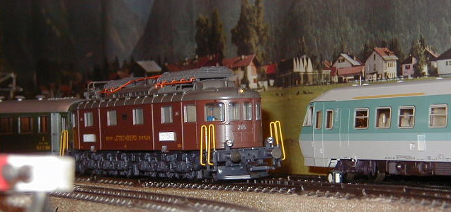 The Roco Museum Edition of the Bern Lötschberg Simplon (BLS) Ae 6/8 #205 lok on the mainline.