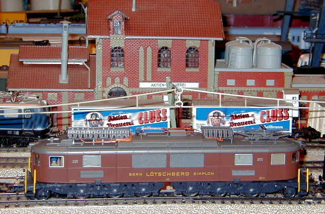 The BLS Ae 6/8 #205 lok passes the Aktien Brauerei.