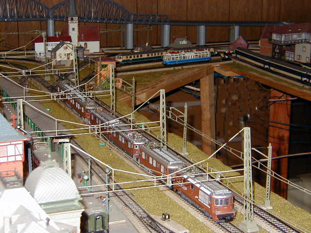 The BLS engines sit idling on the mainline and the bahnhof sidings.