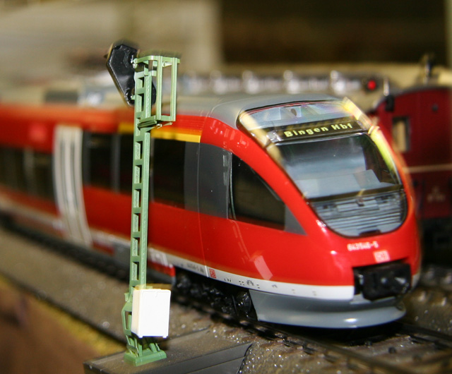 A BR 643 train driver on the route to Bingen (Rhein) Hbf.