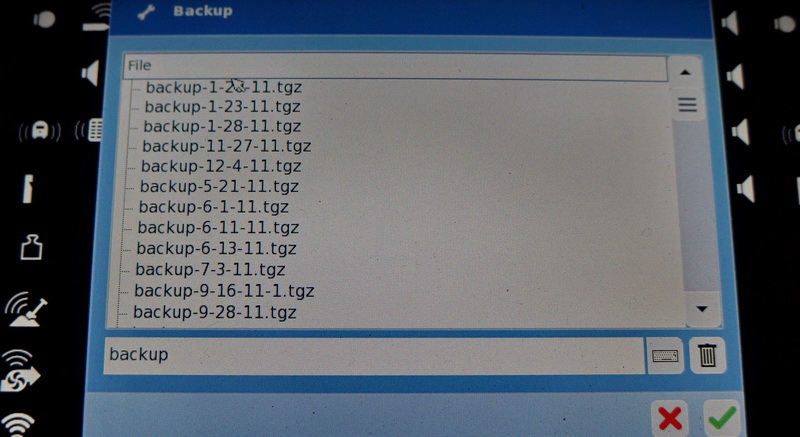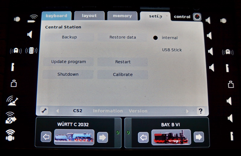The Setup screen allows you to exit the program which saves all the datat. It also allows you to back up your files in case of a problem. I do this internally which saves it on the CS unit and externally using a thumb drive or stick drive. You can never save in enough places. I do that frequently and I add to each file's name the date so that I can find the most recent "tzg" file - the file type used by the CS. You can restore from a previous file using the Restore function. The Setup screen allows you to update the CS software and firmware when necessary. When necessary you can recalibrate the CS if your stylus is giving you problems. I have never had to do this.  The CS has a great keyboard that you can use to add text to layouts, give loks names, name turnouts, name files, etc.