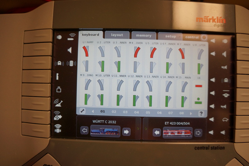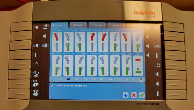 The Control mode of the Central Station (CS) is the first screen to appear. This mode controls the loks and all of their functions. You can access loks by pressing the lok icon adjacent to the red control knob. The contol knob regulates speed and by depressing it you control change the loks direction. Only two loks can be controlled with the CS but using two Mobile Stations, as I do, allows the direct control of four loks. Add to these the direct control of up to eight loks on my iPad bringing the total of loks that I can directly control up to twelve. If I also use the Control 80 that is attached to the CS I can directly control thirteen loks on the layout. And if I add control with my iPhone I can directly control fourteen loks.