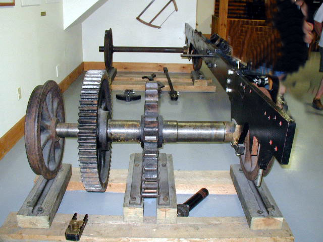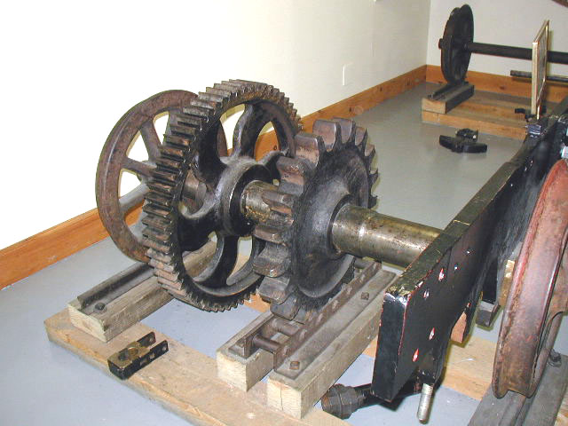 The cog engine gear system. The large gear is the cog gear and the smaller gear, the spur gear, is driven by the pistons of the engine.