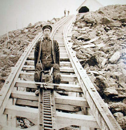 A Mount Washington Cog Railway worker on his sled.