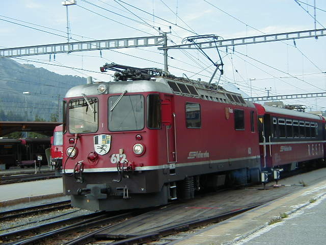 The Verenia RhB Ge 4/4 III #648 engine in the St. Moritz bahnhof.