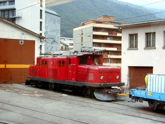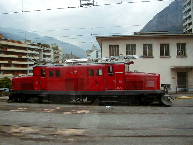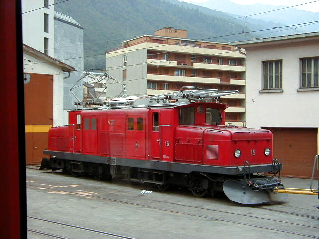 BVZ Crocodile HGe 4/4 I #15 on a siding in Brig.