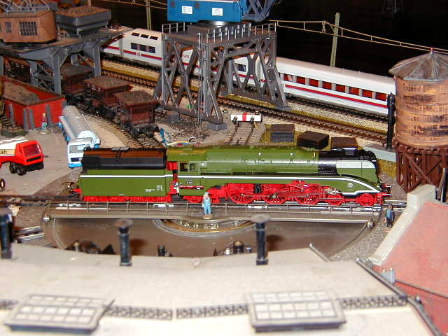 The DB-AG 18 201 steam lok on the turntable.