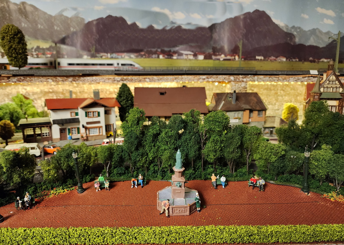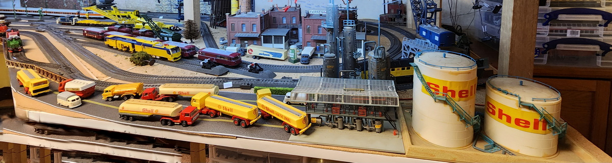 Various photos my layout as of June 2024. Some of these photos show closeups of various sections of my layout. Some of the photos show the lighting that I added to the buildings. Click on the picture on the right to see these photos.