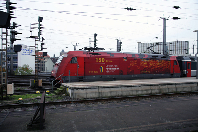 A Br 101 150 Year Anniversary lok. The driver appears to be inspecting the tracks in front of the lok - or is he? (There are no restrooms in the BR 101.)