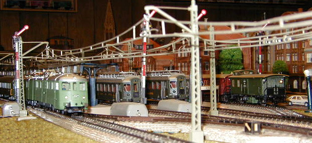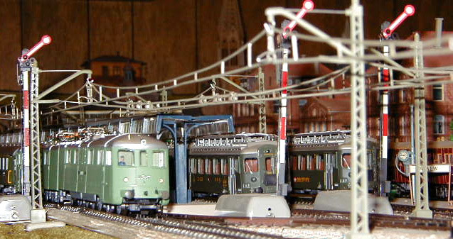The Ae 8/14 Landi-Lok waits with other SBB CFF trains.