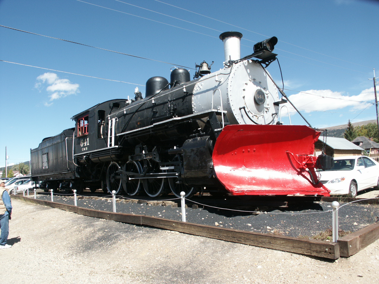 The Leadville, Colorado and Southern Railroad (LC&S) B-4-R steam locomotive with a snow plow. Click on picture to return to description.