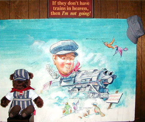 As a gift a Nassau Community College art teacher and colleague, Bob Carter, painted a picture of Heaven as he thought it would be for me. I found a sign in a train store which says it best. The little guy in the lower left of the picture is an engineer bear created by a student in the Nassau Community College Fashion Design Program. While there was room for this picture and sign in my Garden City home, unfortunately there is not enough room in my new home to hang the picture.