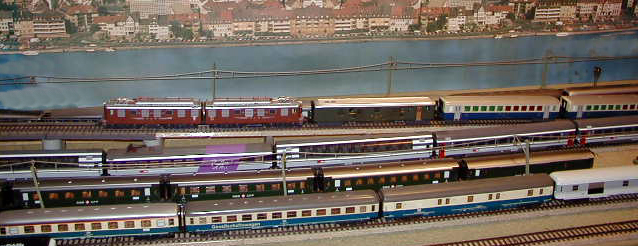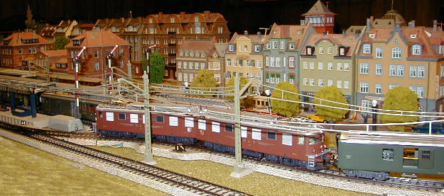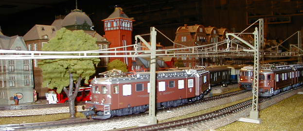 A good view of the upper and lower yards as the Ae 8/8 passes on the mainline.