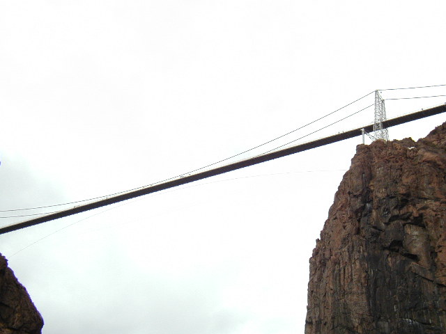 Note how the bridge is suspended from the steel girders built into the rock wall of the gorge. Click on picture to return to description.