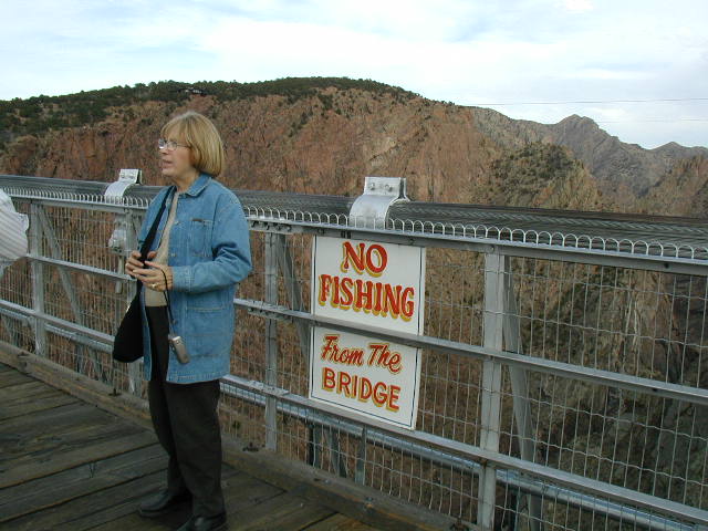 The Royal Gorge Bridge, a 1,000 ft high suspension bridge, the highest in the world. Click on picture to return to description.