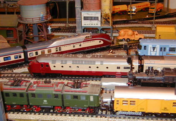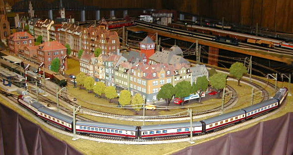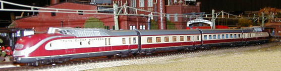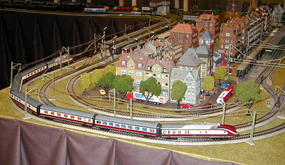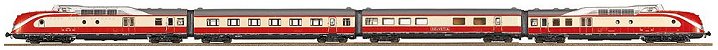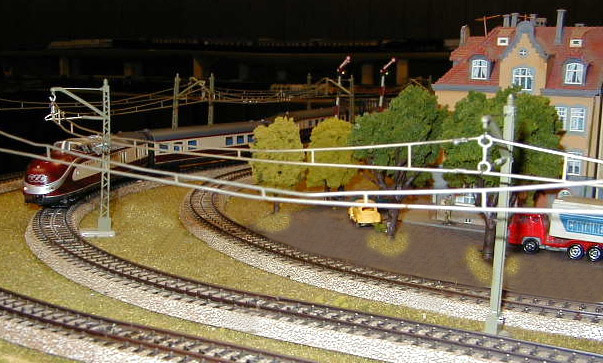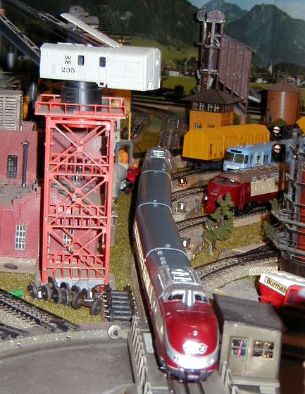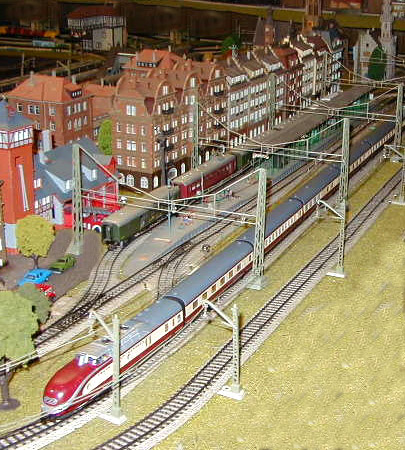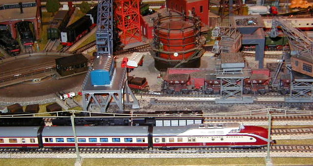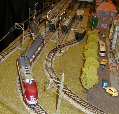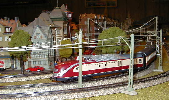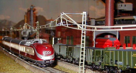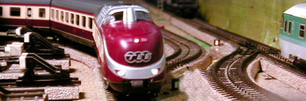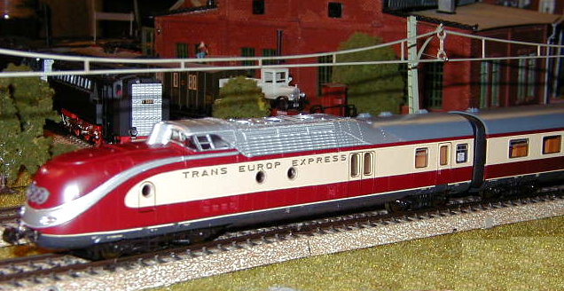 The Märklin (3071) Dutch/Swiss RAm/TEE 1 sits on a siding waiting for the VT 115 to pass.