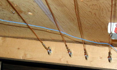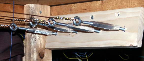 After being pulled through the looms the end of each wire was attached to a turnbuckle which keep the wires taunt.