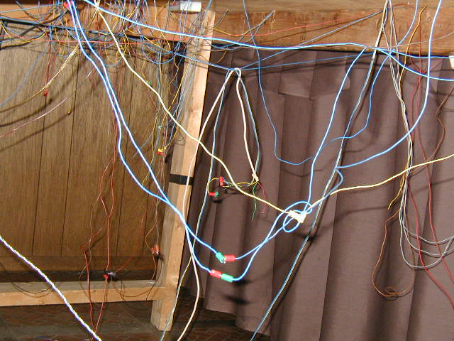 Each layout section was individually wired. First the wires were connected to eyelets.